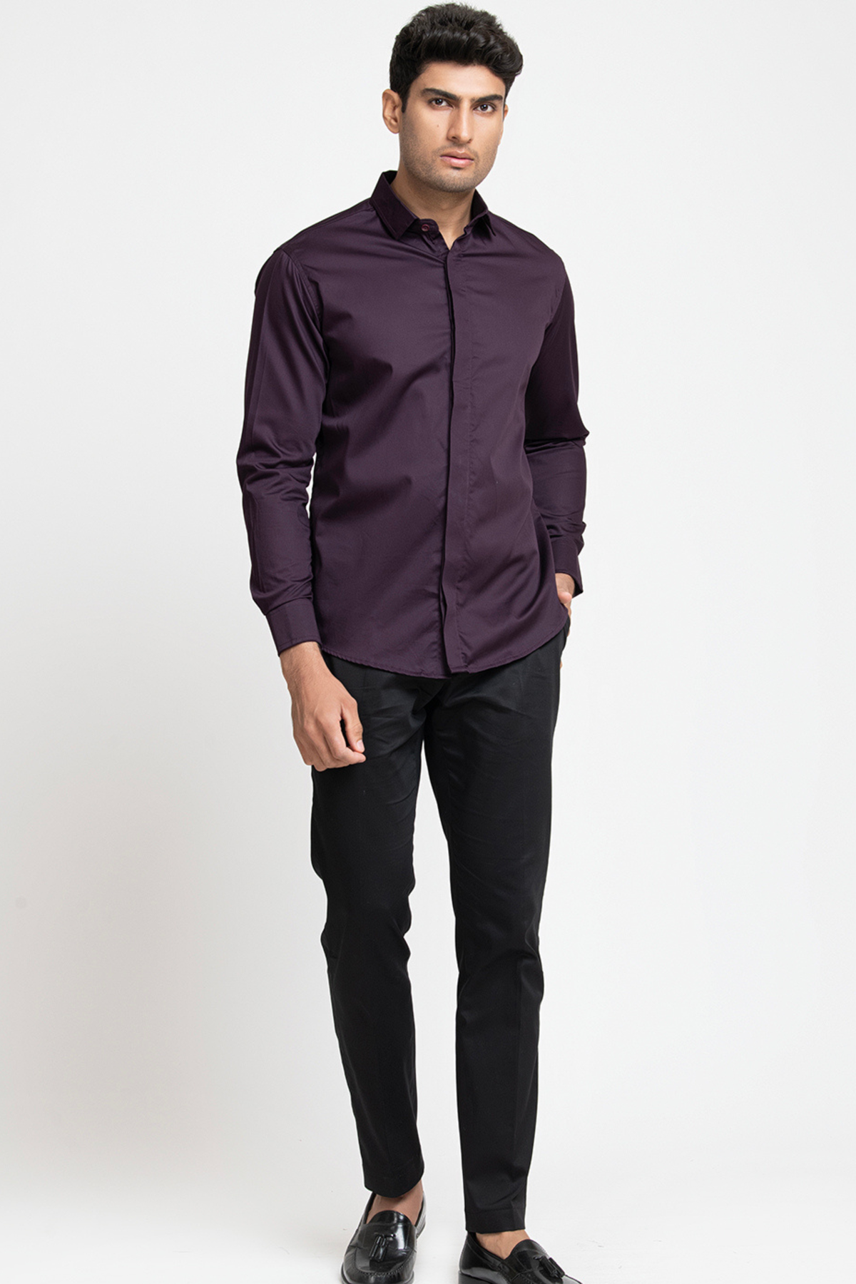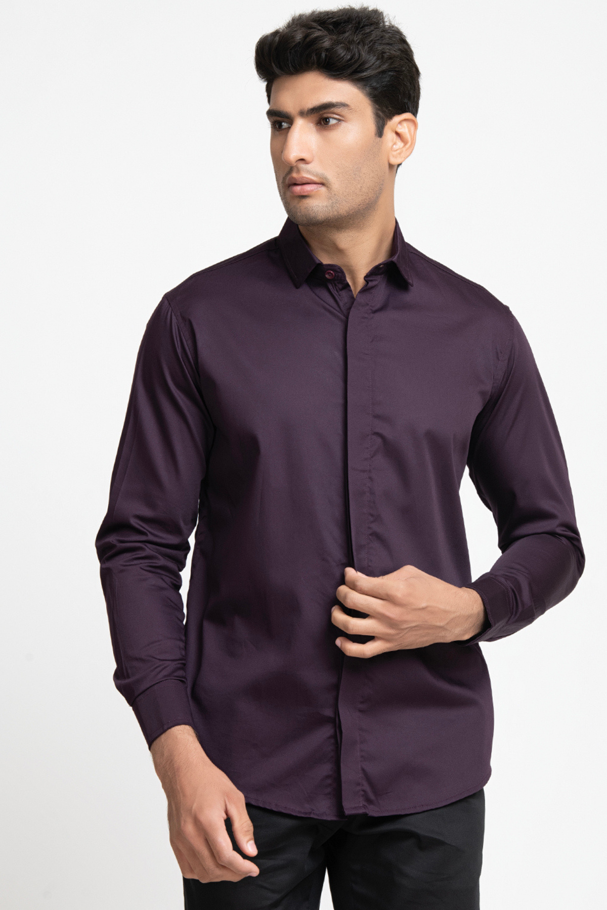 This meticulously crafted shirt featuring concealed buttons that add a touch of sleekness to your look. The minimalist design ensures versatility, allowing you to effortlessly transition from formal meetings to casual outings. Made with high-quality fabric, the "amethsyt" shirt promises all-day comfort and durability.