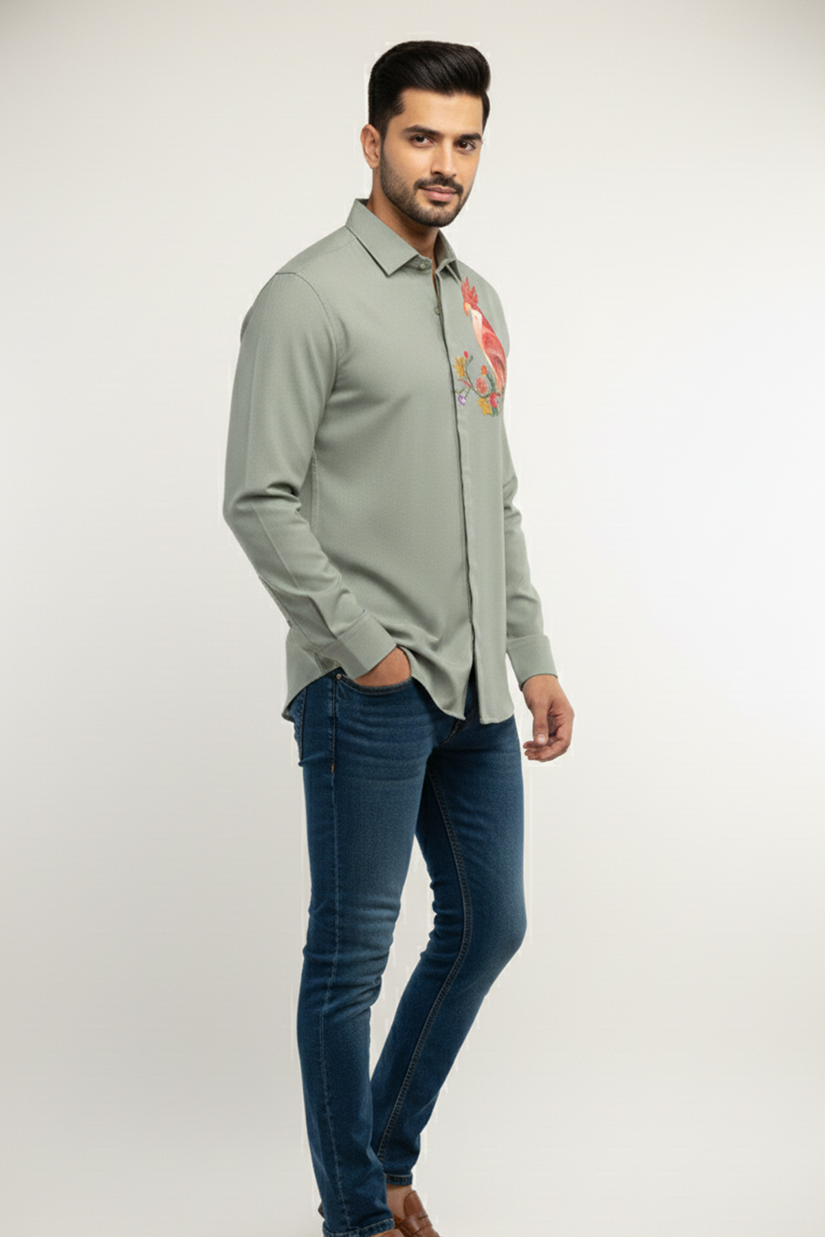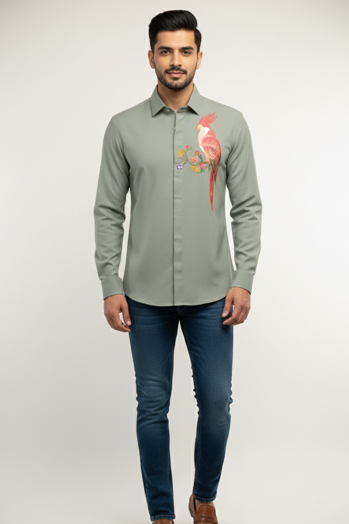 PRODUCT TITLE : Verdant Muse Hand-Painted Designer Stretch Shirt for Urban Men
