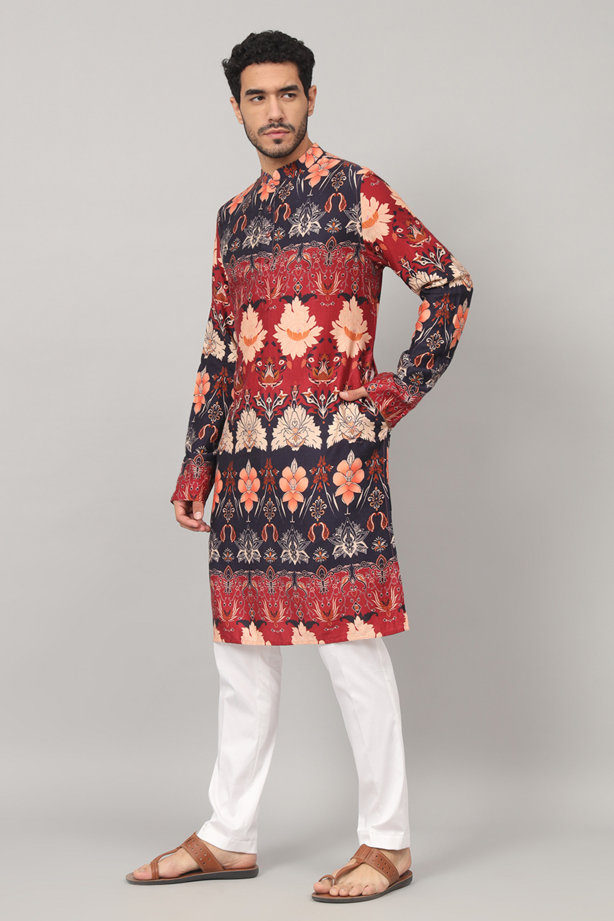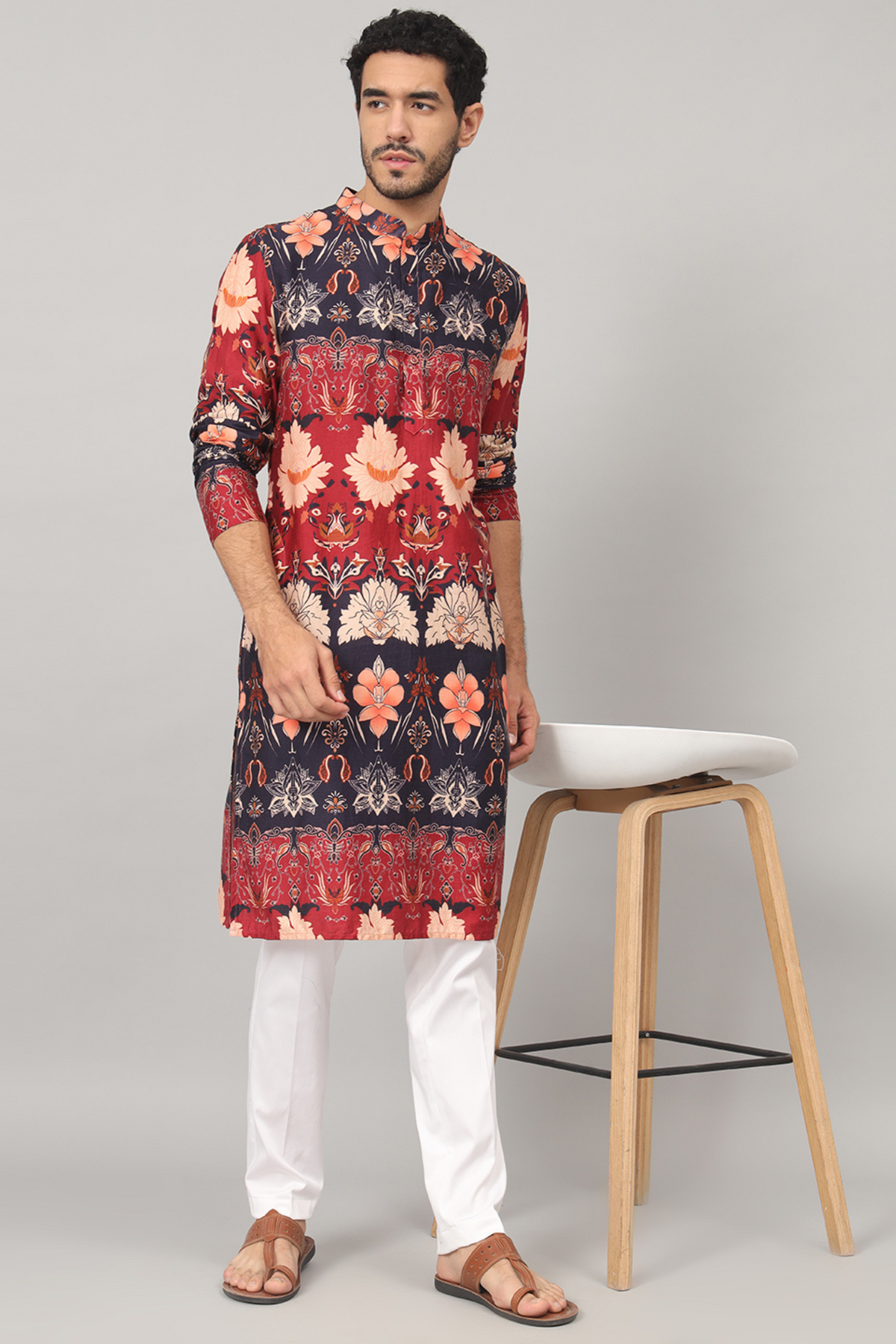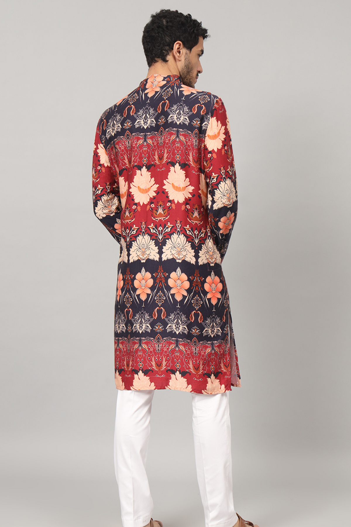 A Blossom Print cotton Kurta is made from cotton fabric featuring a print design inspired by blossoms or flowers. This type of kurta showcases a pattern or print that typically includes various floral motifs, such as blooming flowers, petals, or blossoms. The print design, crafted intricately onto the cotton fabric, adds a touch of elegance and nature-inspired charm to the kurta, making it a stylish and aesthetically pleasing garment suitable for various casual or semi-formal occasions.