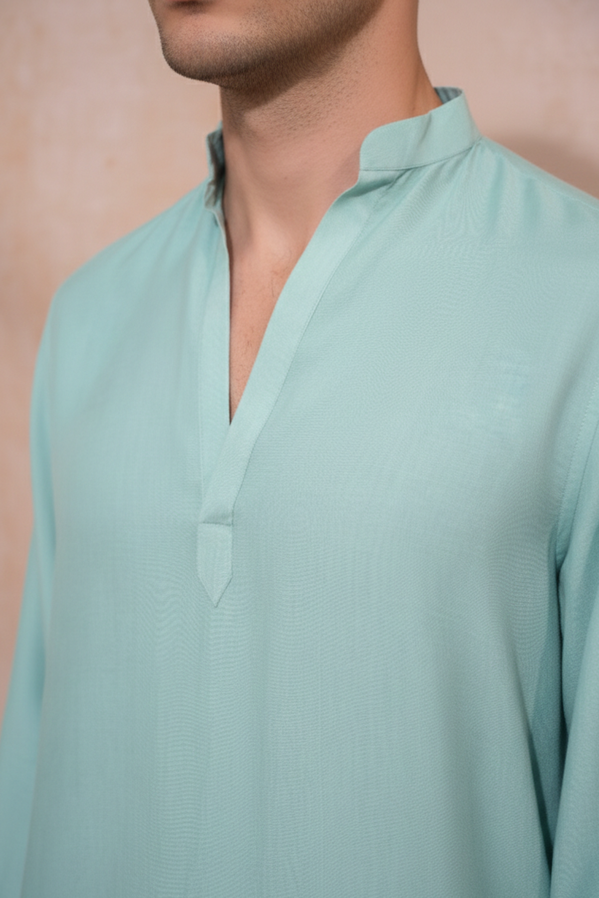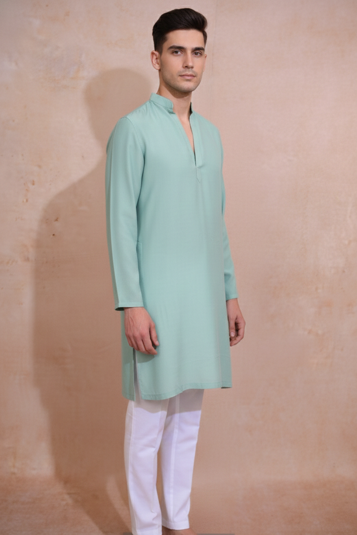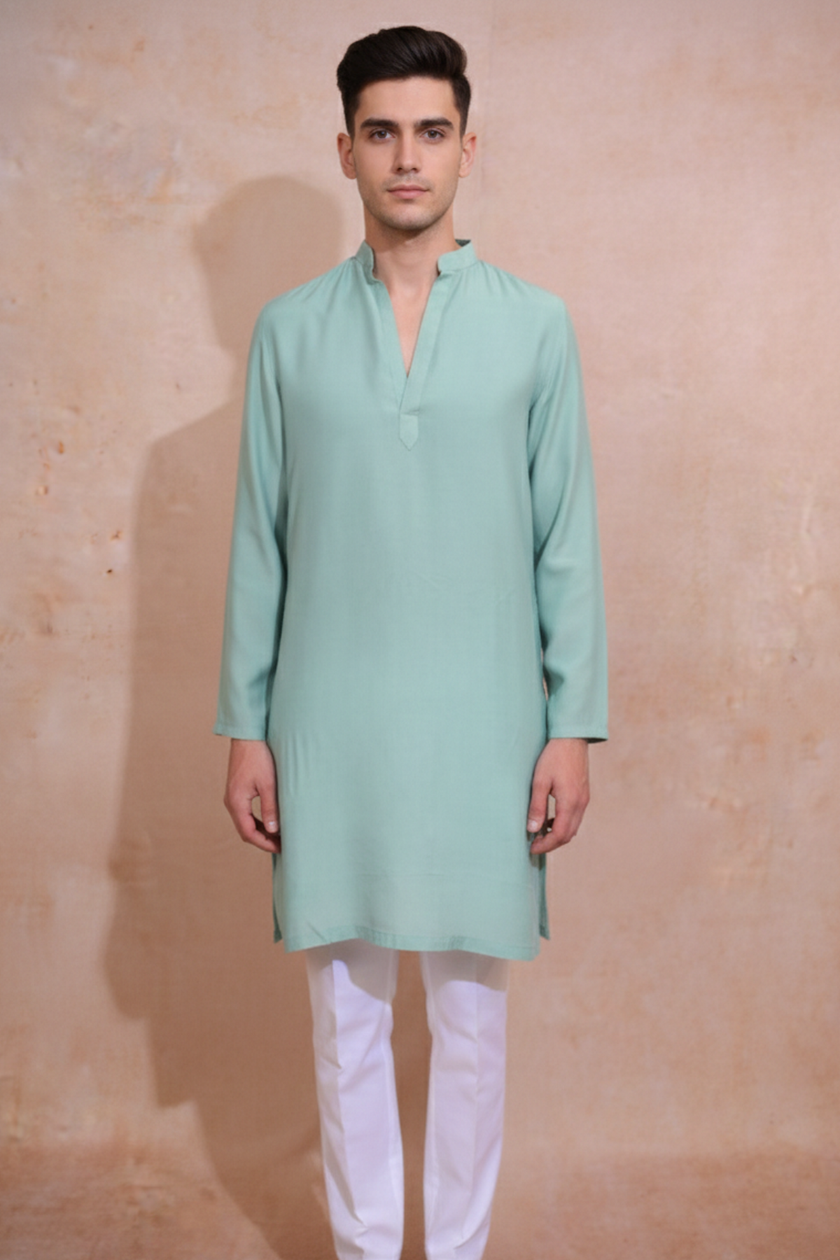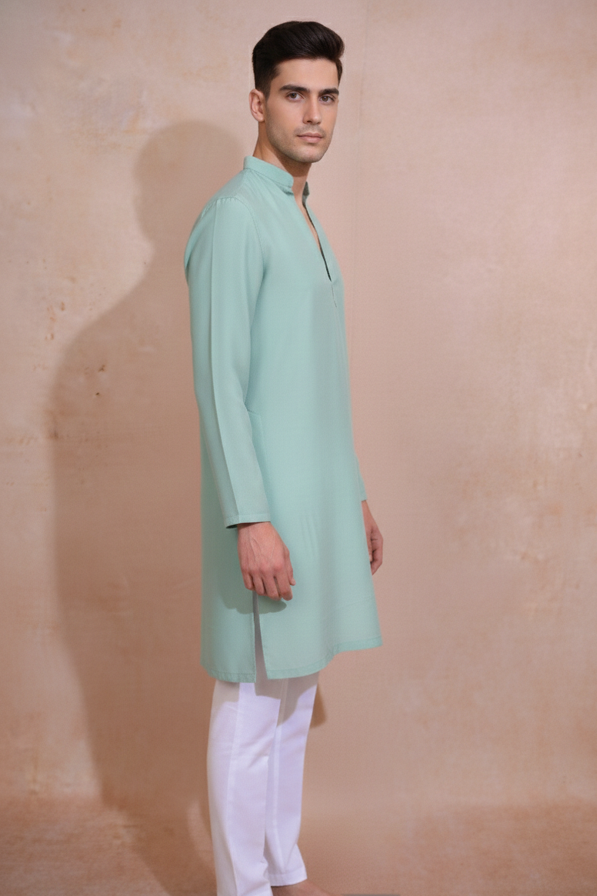 PRODUCT TITLE : Mint Monarch | Falling raw Silk Kurta with Lycra Pants for Men