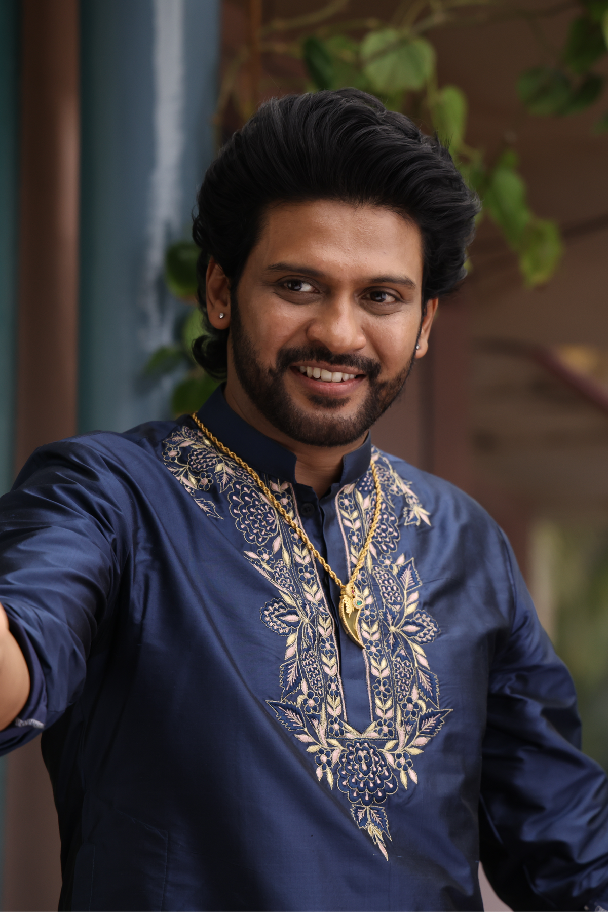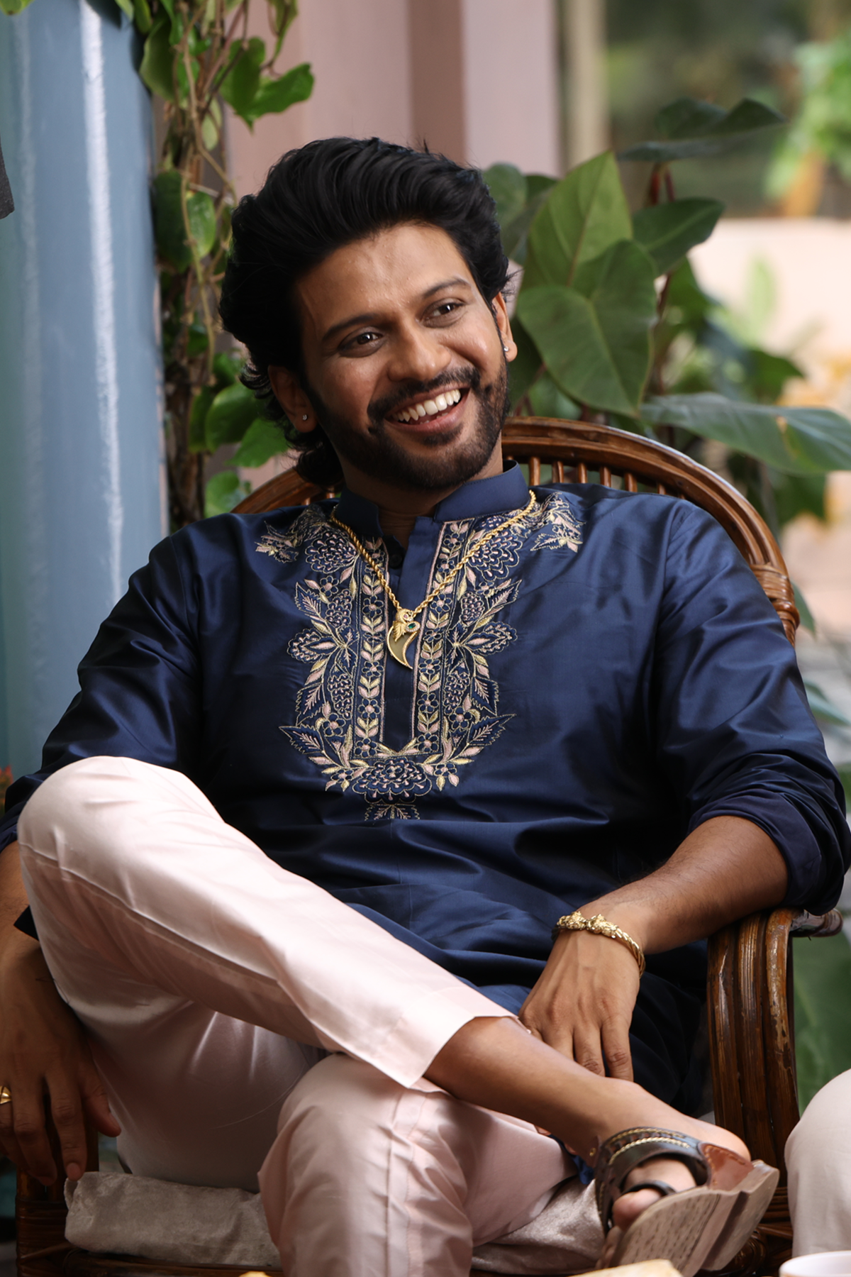 DESCRIPTION : The Navy Noor Kurta Set is a perfect blend of elegance and festive style. The embroidered neckline adds a premium highlight while the pants keep the look traditional and comfortable.Inspired by Anaganaga Oka Raju, designed by Mouna Gummadi (Hilo Design) and worn by Naveen Polishetty, this outfit reflects cinematic styling with modern tailoring.