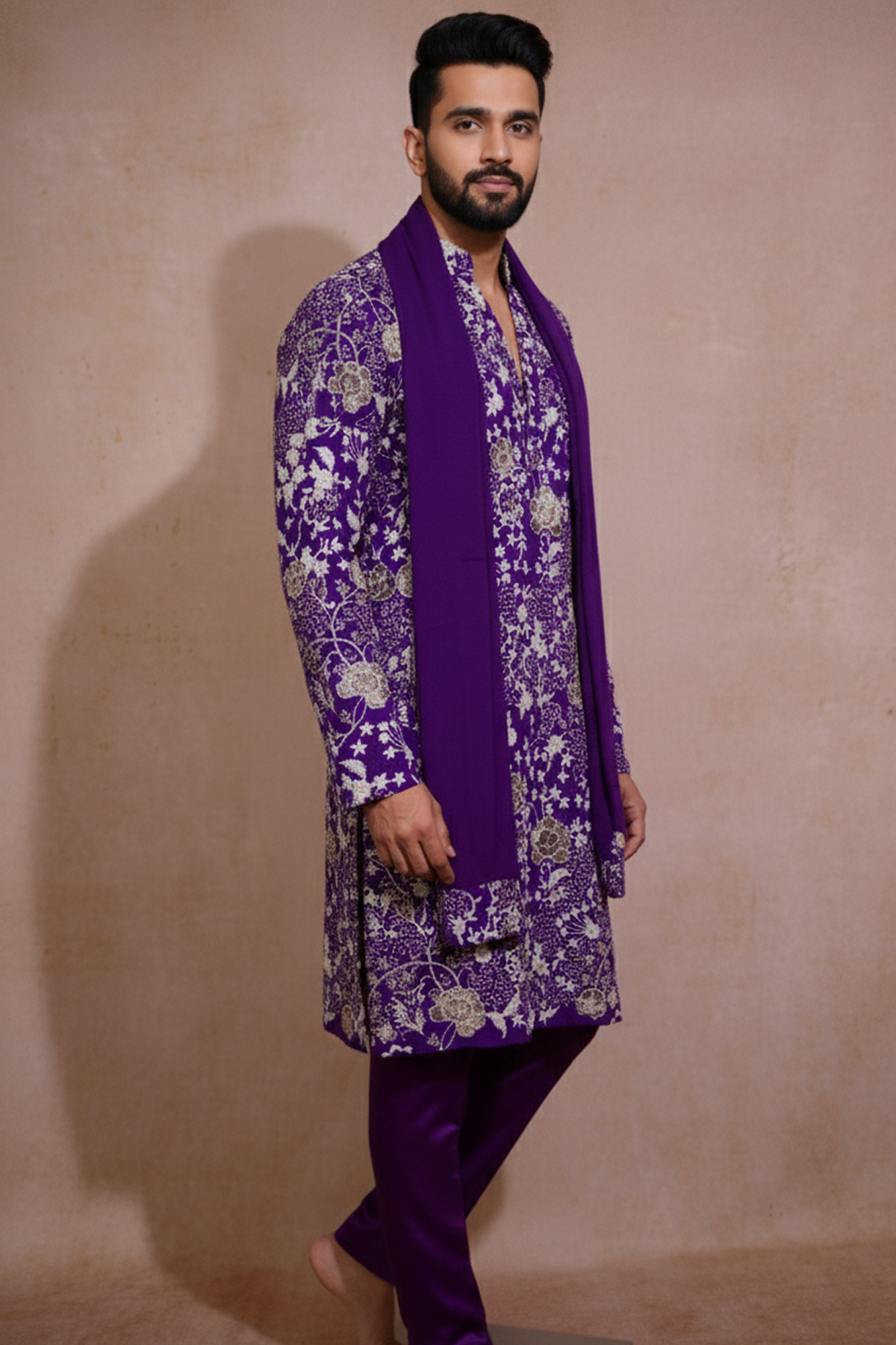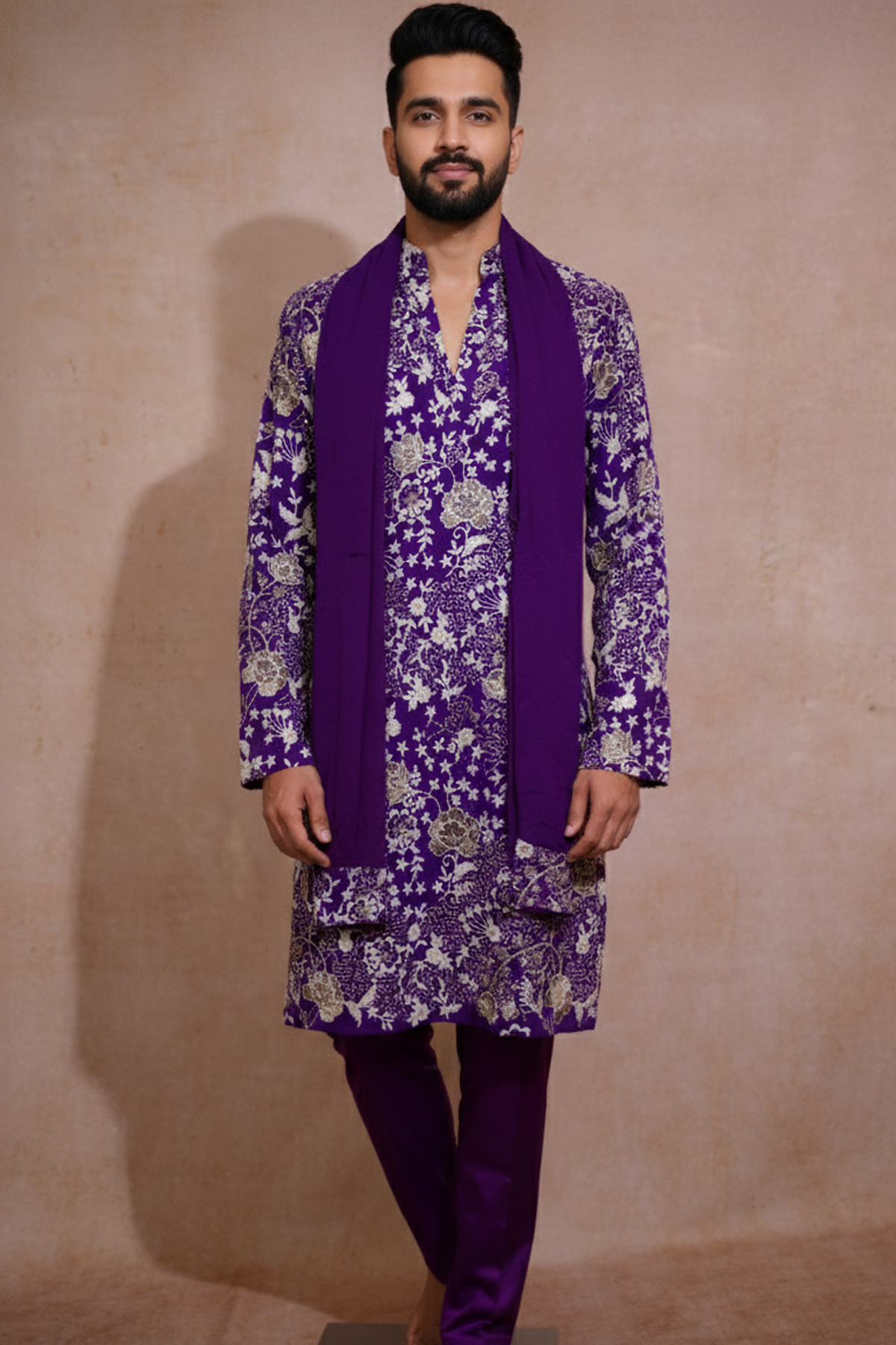 FABRIC DECRIPTION : Made from premium ceremonial work fabric, this kurta features detailed surface craftsmanship that enhances visual depth while maintaining softness and breathability. The fabric is engineered for festive luxury with effortless wearability.