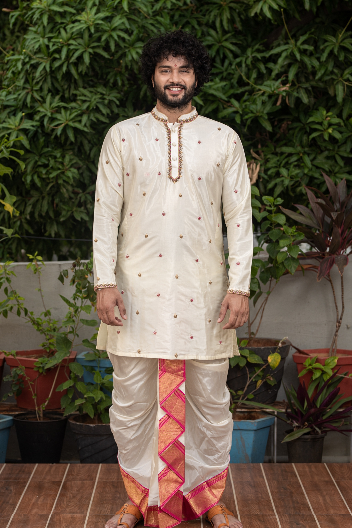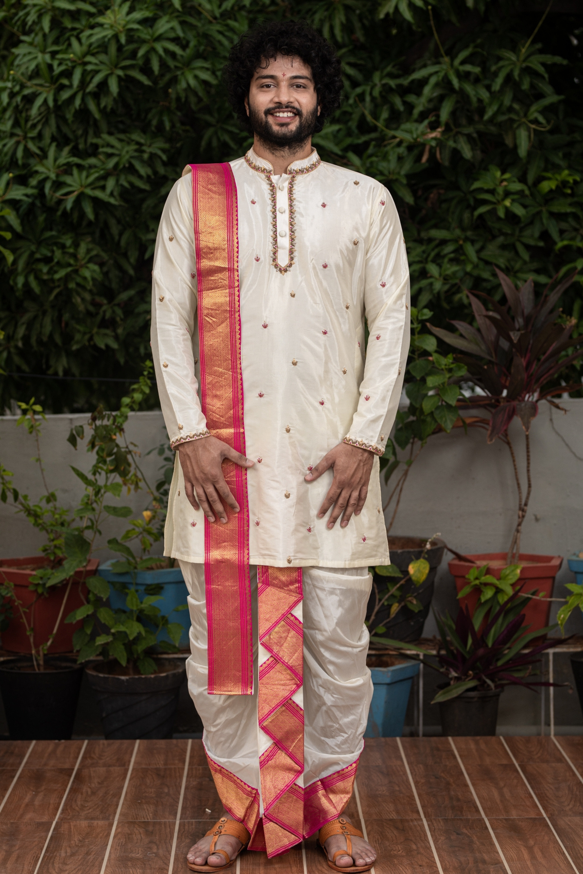 Contain: This product contains the whole set. You'll get 1.Pattu Kurta 2.Pattu Dhoti
