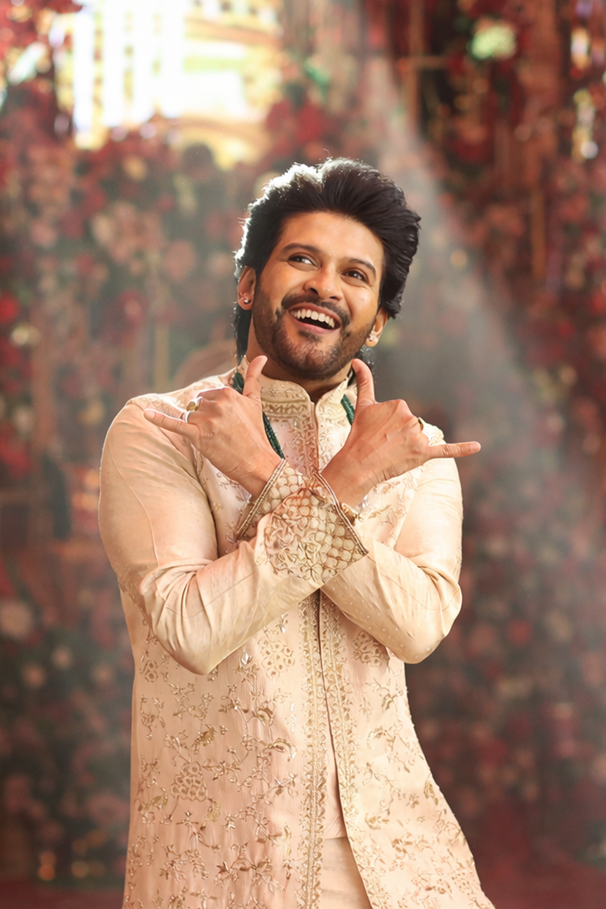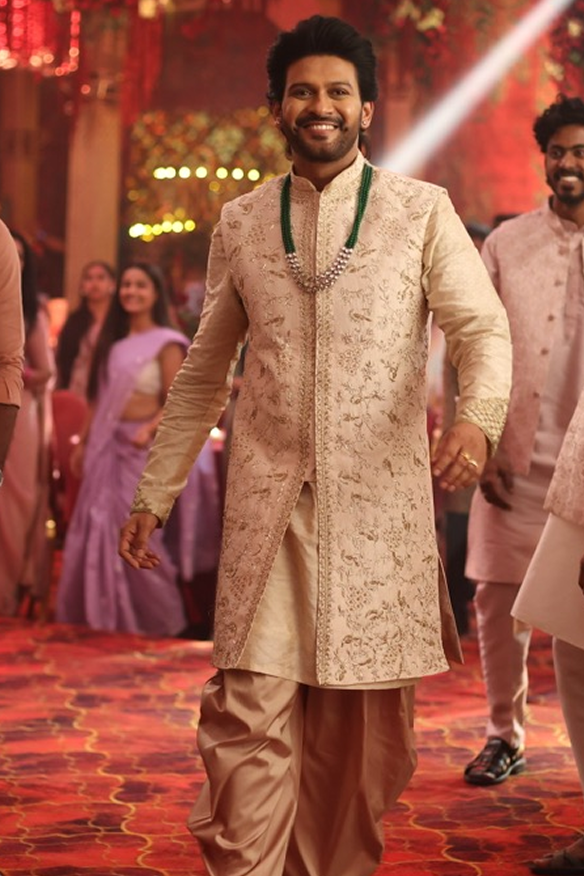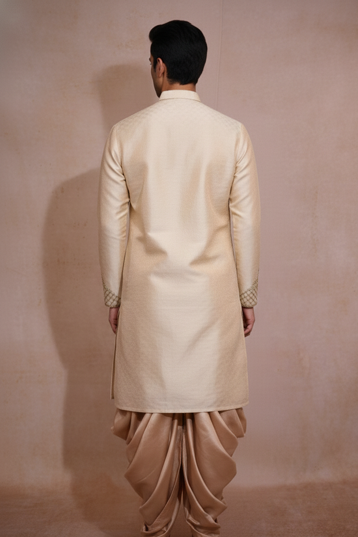DESCRIPTION : The Royal Sand is designed to feel elegant, grand, and effortlessly stylish. Crafted in premium festive fabric, this jacket-kurta set looks rich and refined, while the dhoti adds a traditional statement element. Perfect for weddings, festive occasions, and special celebrations where you want a royal look with comfort.This Product is inspired by the costumes featured in Anaganaga Oka Raju. Designed by Mouna Gummadi, co-founder of Hilo Design, and worn by Naveen Polishetty in the promotion. The design reflects a blend of cinematic styling, traditional craftsmanship, and modern tailoring. Crafted in premium fabrics, suitable for weddings, festive occasions, and special events.