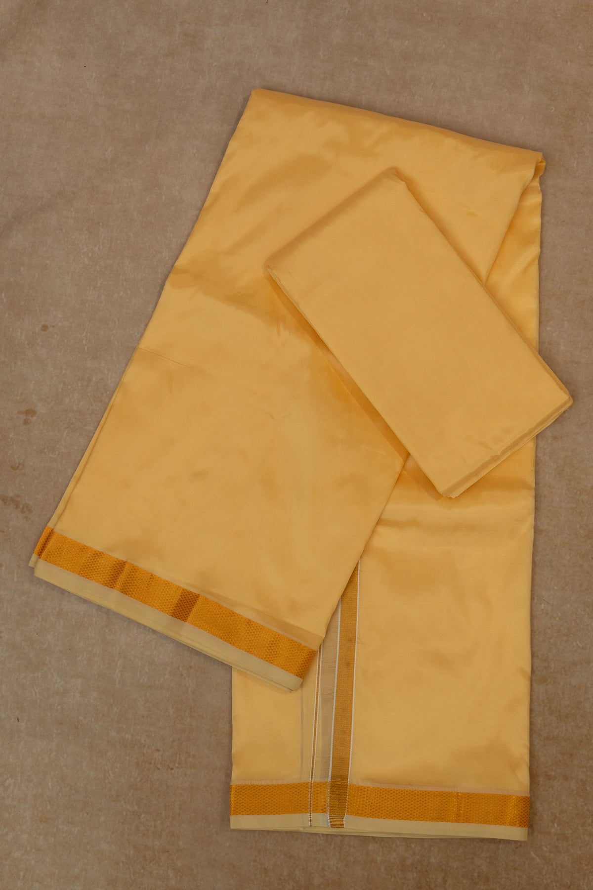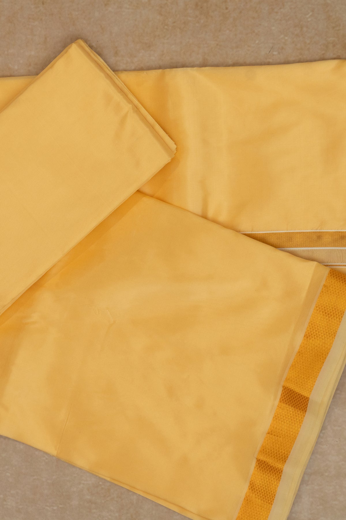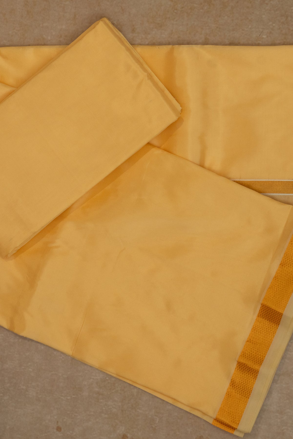 DESCRIPTION : Pravalya is a graceful pale peach fine-silk fabric that blends warmth, tradition, and understated elegance. Its soft, soothing tone is enhanced by a gentle natural sheen, giving it a refined traditional appeal.A yellow-gold zari central line, bordered by neat white liners, adds subtle definition to the fabric, while the mustard-gold jacquard zari lower border introduces a touch of festive brilliance. Together, these details create a harmonious balance of simplicity and cultural richness.